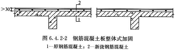 6.4.2??當(dāng)采用增加板厚方式對鋼筋混凝土板進(jìn)行補(bǔ)強(qiáng)時(shí),應(yīng)符合下列規(guī)定: